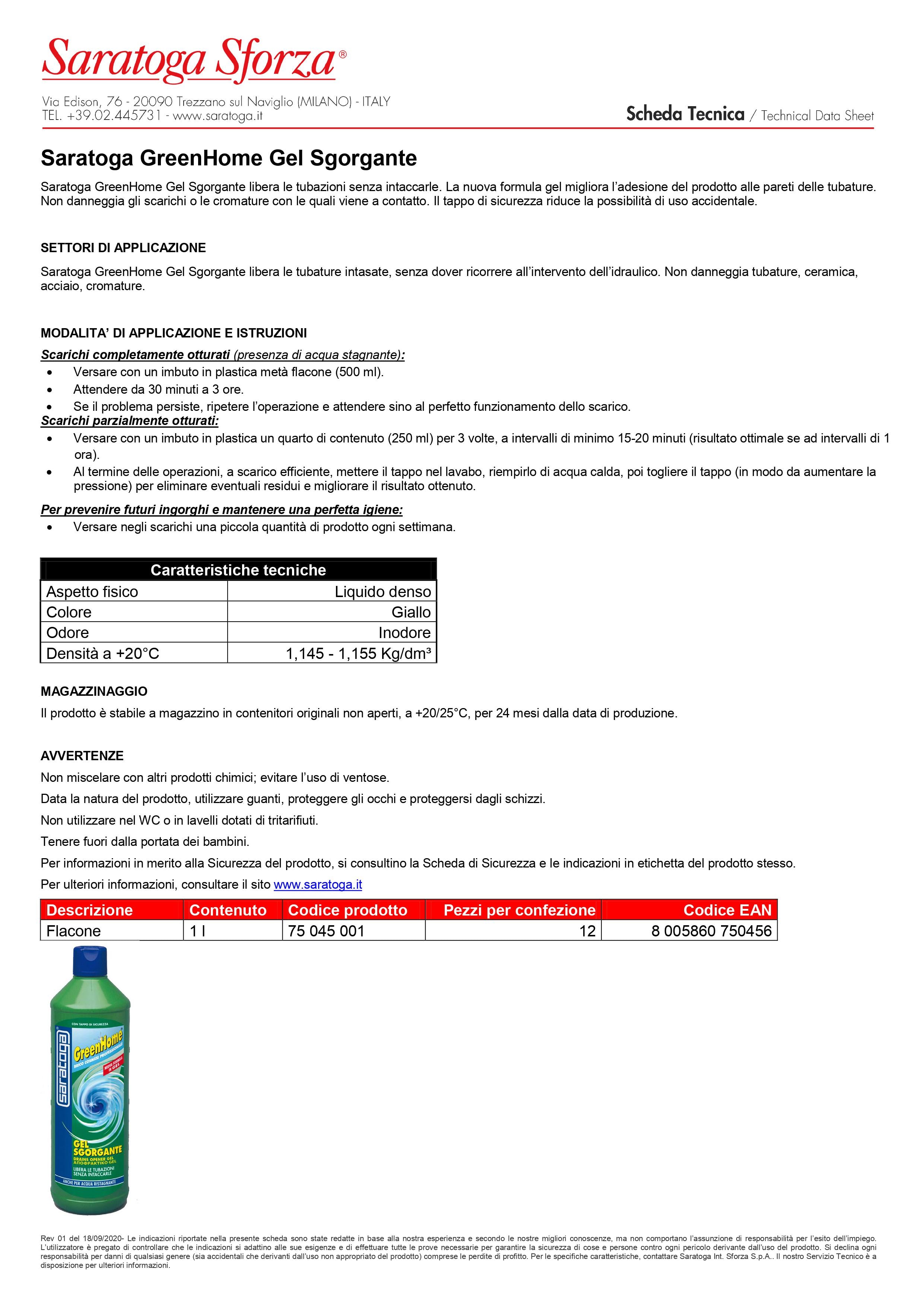 SARATOGA - GreenHome Gel Sgorgante 1LT